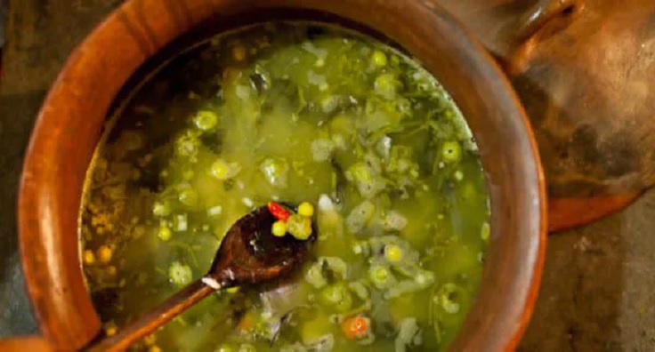 Ferva essa mistura por 30 minutos e retire a espuma com o auxílio de uma colher. Coloque o peixe e deixe ferver por dez minutos. Por fim, adicione o restante do tomate, da cebola, da pimenta-de-cheiro, do cheiro verde e da chicória. O sal é a gosto.
