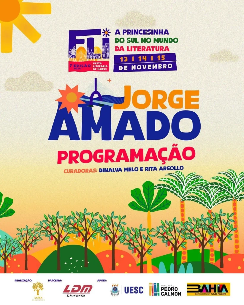 A Festa Literária de Ilhéus divulgou, na quarta-feira (30.10), a programação completa de sua sétima edição, que vai ocupar o Centro de Convenções da cidade de 13 a 15 de novembro. Com o tema “A Princesinha do Sul no Mundo da Literatura”, a 7ª FLI vai transformar a Terra da Gabriela num palco Literário-Cultural-Turístico-Artístico-Acadêmico.