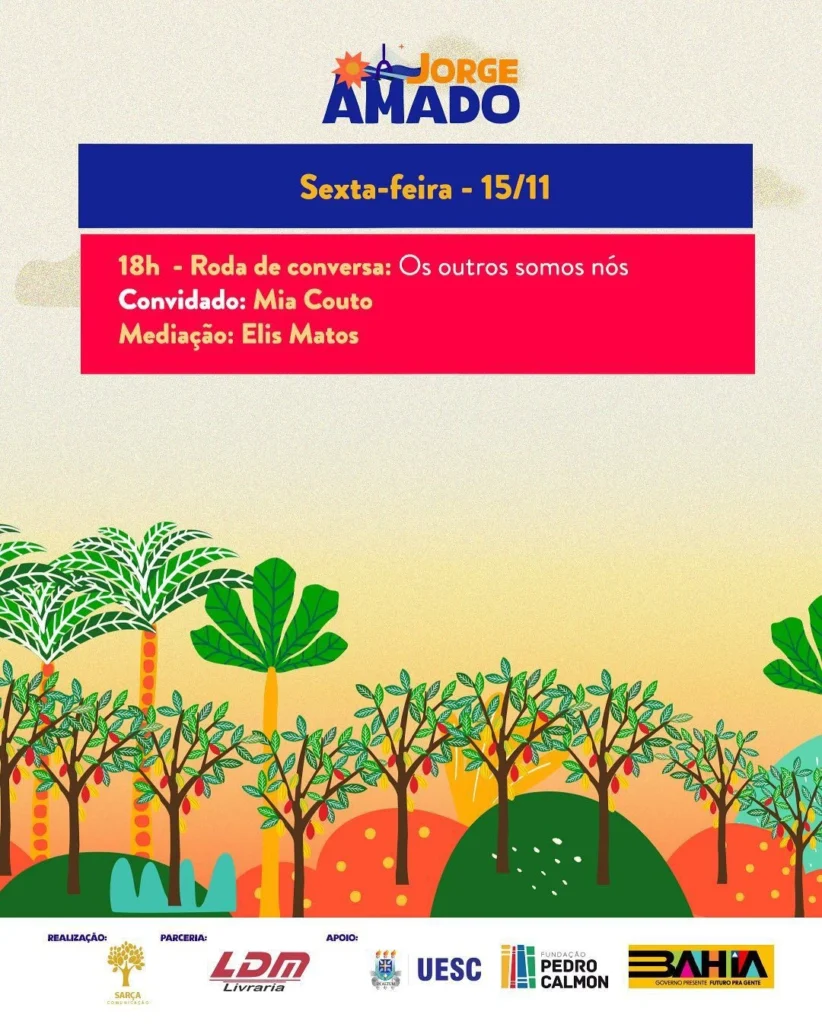 Sexta-feira – 15/11 – 18h. Roda de conversa: Os outros somos nós. Convidado: Mia Couto. Mediação: Elis Matos.