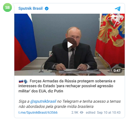 “Vemos que os Estados Unidos da América estão tentando manter seu domínio militar e político global a qualquer custo. Com esse propósito, ao usar a Ucrânia, eles buscam infligir uma derrota estratégica à Rússia”, afirmou Putin ao lembrar que Washington declara abertamente planos para implantar mísseis de médio e curto alcance, inclusive na região da Ásia-Pacífico.